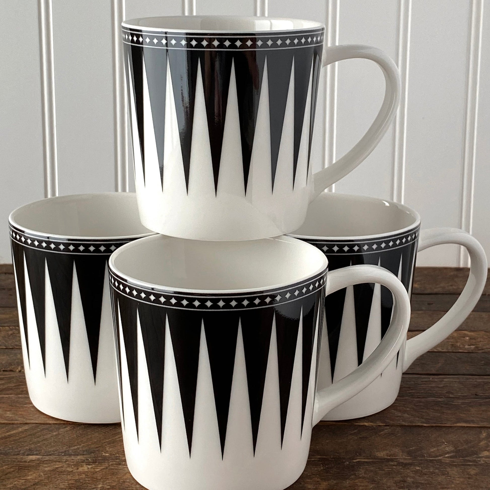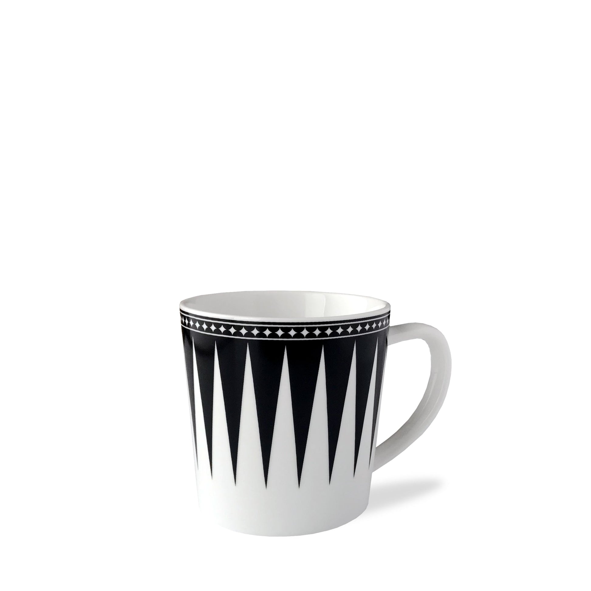 Marrakech draws inspiration from the markets of Morocco and the bold patterns of the beautiful ceramics piled high. Refined by a love of Art Deco forms, this striking mug holds 14 oz. of your favorite hot beverage, soup, or frozen treats in graphic style.