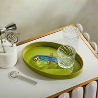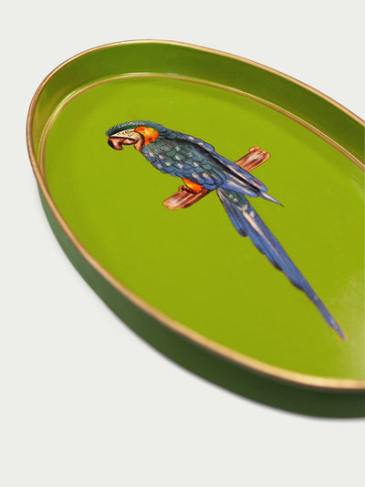 Les Ottomans Fauna Hand-painted Iron Tray - Green Parrot