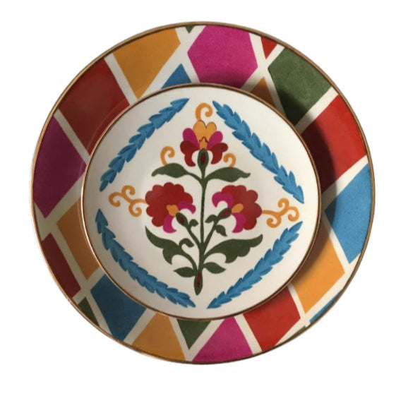 Hand-painted by one of Italy's finest porcelain decorators, Matilde Argiolas. The Iris Flower Dessert Plate is a testament of exceptional Italian craftsmanship. An inspired Susani Flower Collection motif creates a mesmerizing visual effect, complemented by a gold rim. This plate is truly a fine work of exceptional craftsmanship.