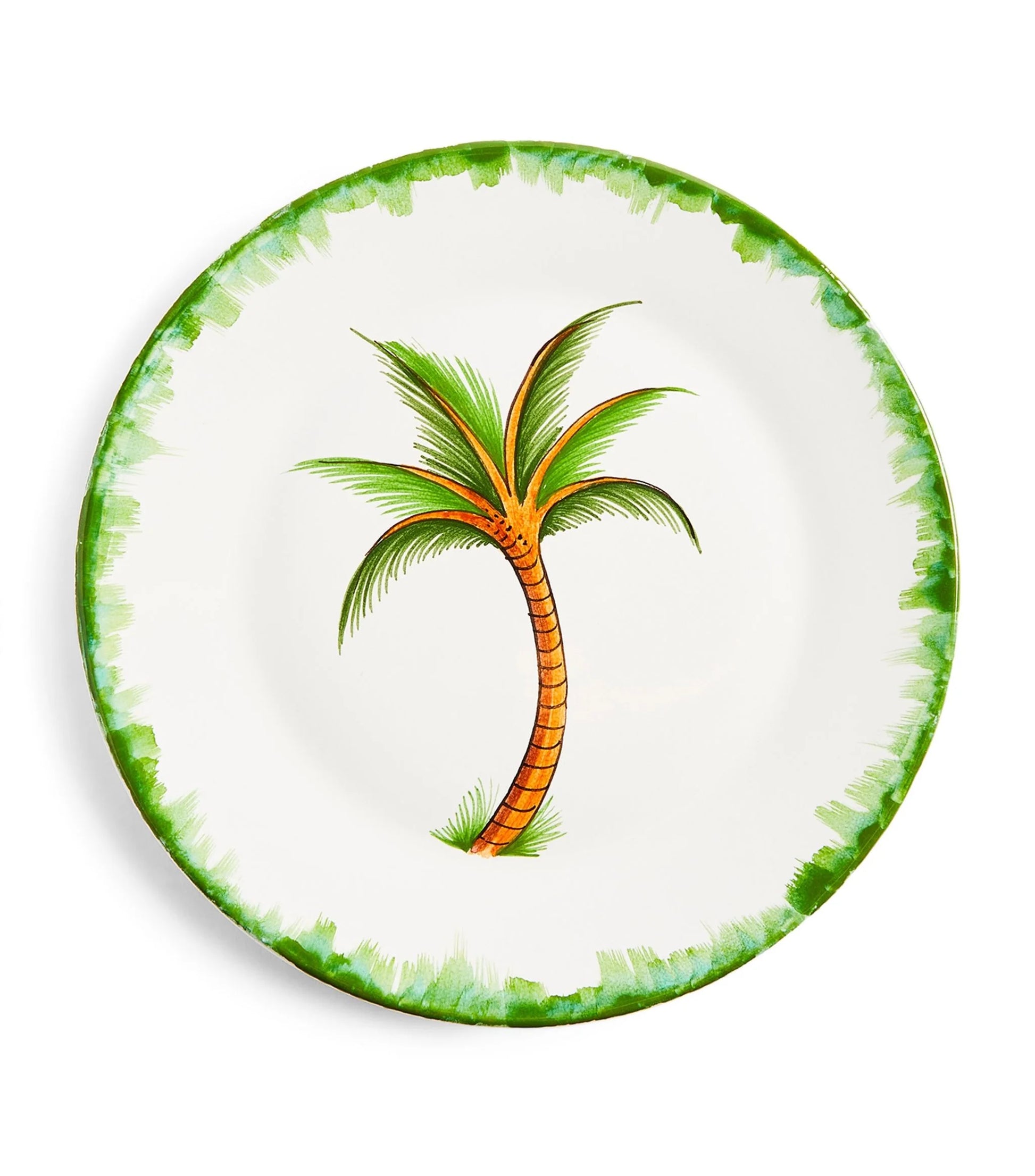 Tropical trees are hand-painted in Italy on these ceramic plates on wuali the lightness of the design is combined with the freshness of nature.