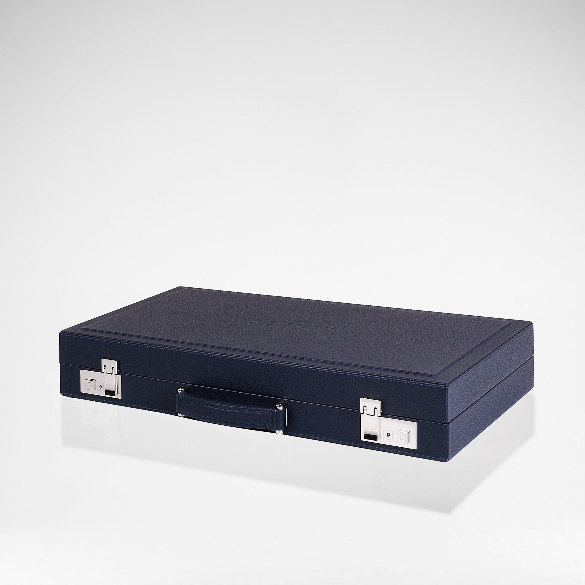 In navy hand-stitched leather, this backgammon board is the ultimate luxury for any game's enthusiast. Separate compartments hold each player's pieces, dice shakers and a leather doubling dice and an engravable sterling silver plaque adds a personal touch. Palladium locks keep the contents safe, while a leather carrying handle allows it to be transported anywhere for a game. The LINLEY Games and Sporting range includes games boards suitable for the whole family, to accessories for outdoor pursuits.