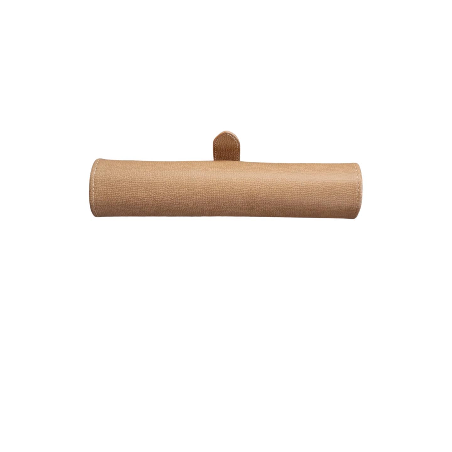 For en-route entertainment. Handmade in Los Angeles, this luxe caramel travel backgammon set is a perfect addition to any globetrotter’s hand luggage. The set features a leather base with a brown, white and blue suede playing field. Ideal for the traveler who can’t resist a game on the go. The playing field is soft suede with a velvety feel. The exterior, including the strap is pigmented leather with cross grain.