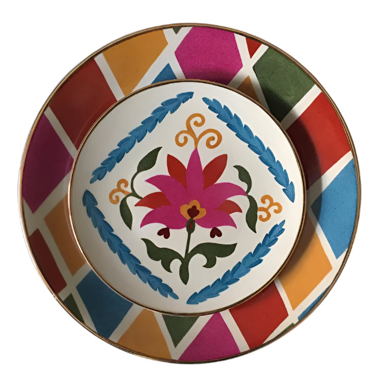 Hand-painted by one of Italy's finest porcelain decorators, Matilde Argiolas. The Tulip Flower Dessert Plate is a testament of exceptional Italian craftsmanship. An inspired Susani Flower Collection motif creates a mesmerizing visual effect, complemented by a gold rim. This plate is truly a fine work of exceptional craftsmanship.